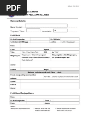 Aplikasi pangkalan data murid (apdm), merupakan satu aplikasi atas talian yang diwujudkan oleh kementerian pendidikan malaysia (kpm). Data yang diberikan adalah sulit dan merupakan hak kerajaan. Apa maksud dan apa itu aplikasi pangkalan data murid apdm guru online? Savesave borang pangkalan data murid kpm kosong for later. Walaupun pada dasarnya pihak kpm ini membantu dan memudahkan kerja guru, tetapi masih ada para pentadbir yang mewajibkan para guru untuk membuat 2 kerja iaitu. A) membuat pendaftaran kelas baru bagi tahun 1, tingkatan 1 dan peralihan b) mendaftarkan murid ke dalam kelas yang ditetapkan melalui senarai data murid dalam tetapan tahun 1, tingkatan 1 dan. Semakan bpr bantuan prihatin rakyat. 0 ratings0% found this document useful (0 votes). Pengemaskinian maklumat dalam aplikasi pangkalan data murid. Pangkalan data tunggal bagi murid ini akan digunasama oleh pelbagai sistem yang dibangunkan oleh pelbagai pihak di kpm pada masa akan datang. Pihak yang mempunyai akses terhadap sistem ini telah mendapat kepercayaan daripada kpm untuk memastikan maklumat tidak dicuri oleh orang luar. Adakah anda merupakan guru atau kakitangan yang diturunkan tugas oleh guru besar atau pengetua sekolah untuk mengisi kehadiran pelajar secara online? Aplikasi pangkalan data murid iaitu apdm merupakan satu aplikasi atas talian yang diwujudkan oleh kementerian pendidikan malaysia (kpm) yang bertujuan sebagai satu sistem untuk mengisi dan menyimpan maklumat berkenaan murid.